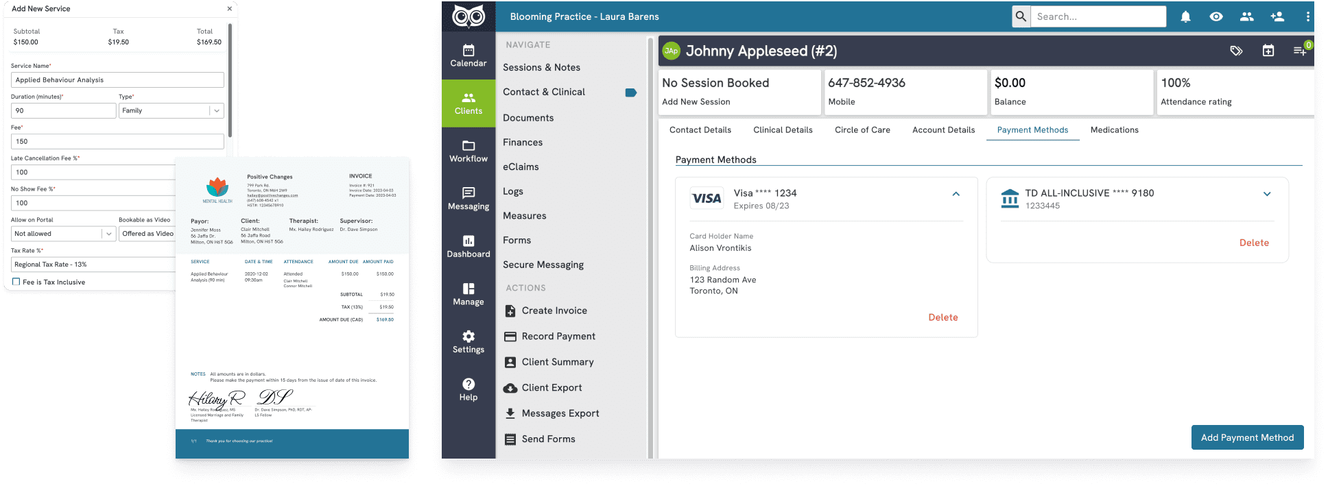 Look professional by making it easy for clients to pay for sessions and services. It’s as easy as adding their credit card or bank account through the Client Portal!